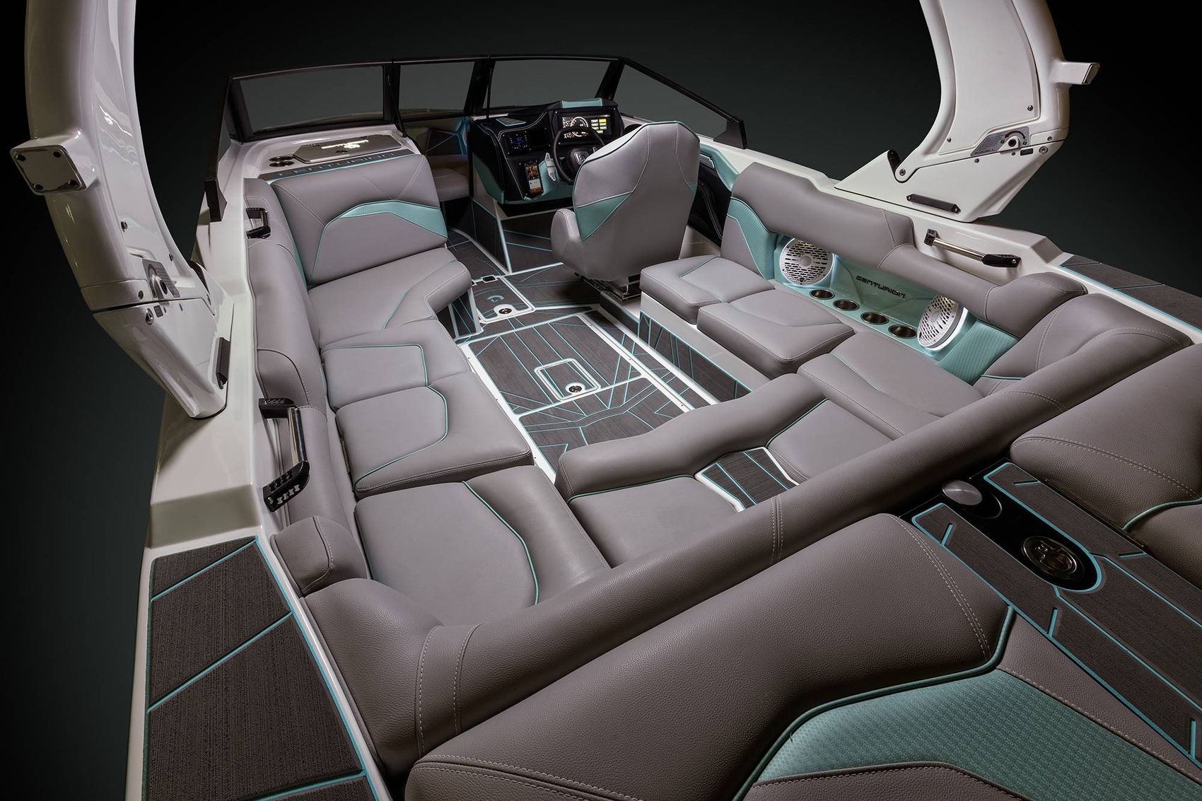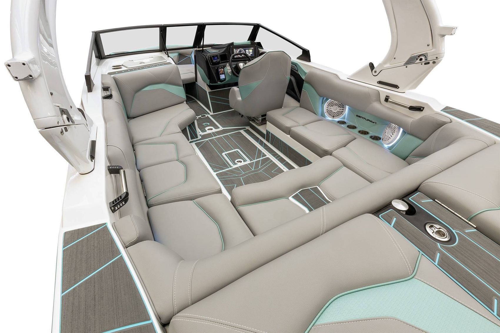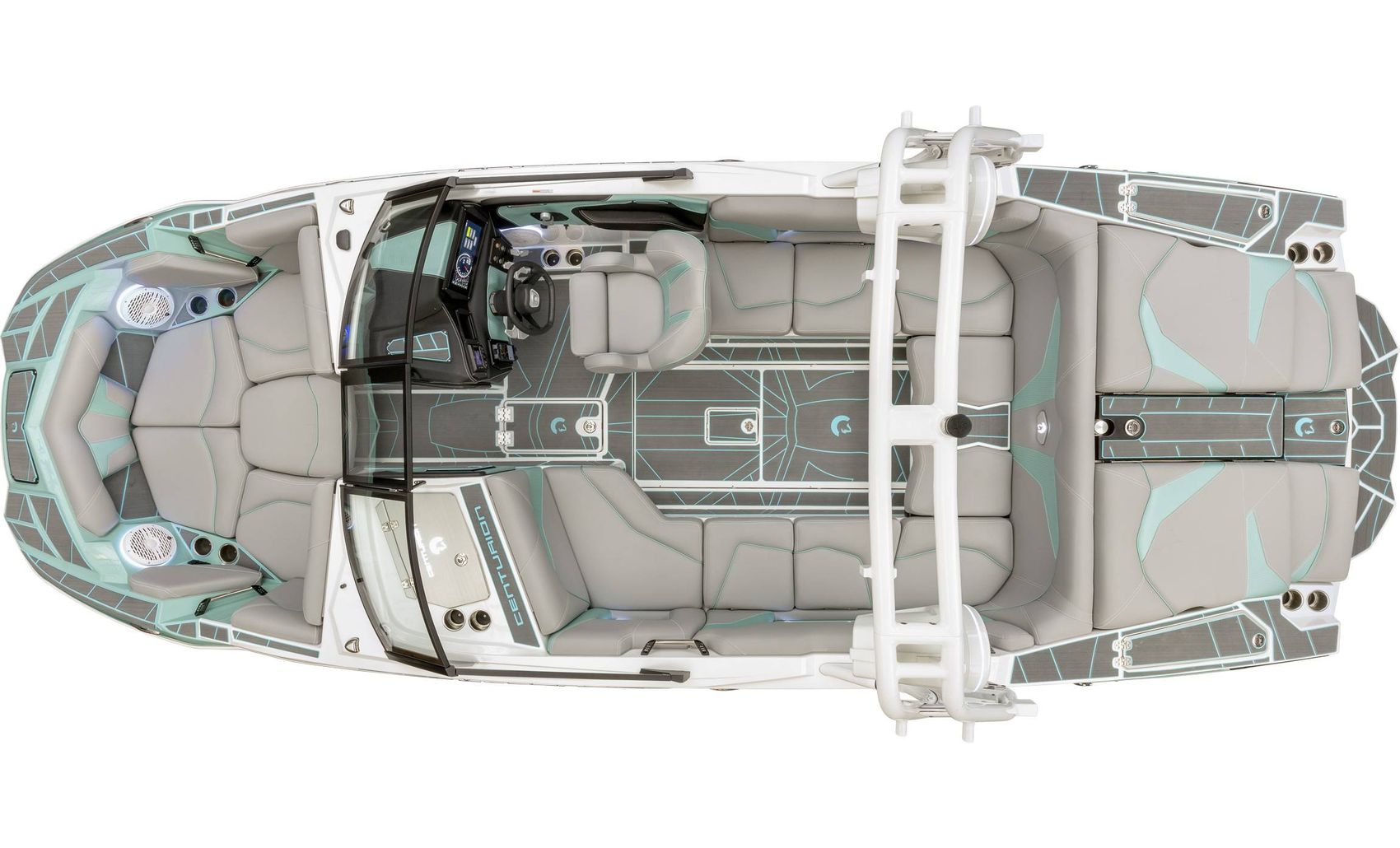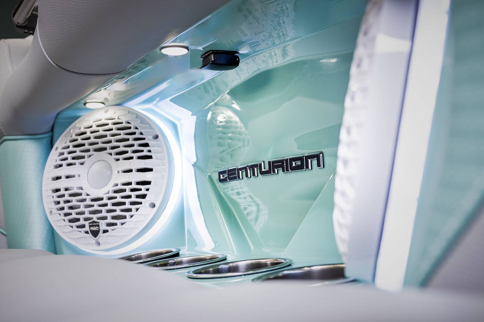 When we say Surf-Ready we are referring to a package that includes signature Centurion performance systems like the Opti-V Hull, RAMFILL2, QuickSurf Pro, and 4350 pounds of evenly placed ballast. This package also includes 409 ft/lb of GM torque, a 9-speaker Champ Sound System by WetSounds, a tandem axle trailer, a Great Lakes boat cover, a Roswell bimini, Board Racks by Roswell, and a battery management system with PDM breaker panel located in the glove box. The Fe22 also includes customizable gel coat colors inside and out, Spradling vinyl and GatorStep non-skid options that add another layer of style. Combine these options with Centurion’s convenience features like the walk-through trash shoot, shocked hinged lounge seating, Rhino lined storage areas and a one-piece trunk lid with built-in seating and a nationally advertised price of $139,995 USD* and you can see why we call this a Fearlessly Efficient wake boat. *Price does not include tax, freight or dealer prep.