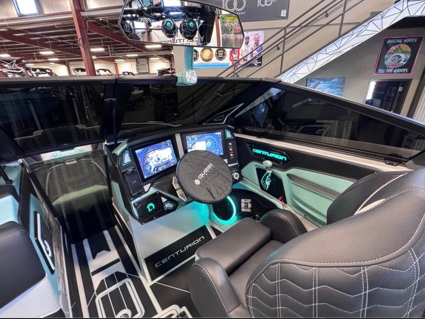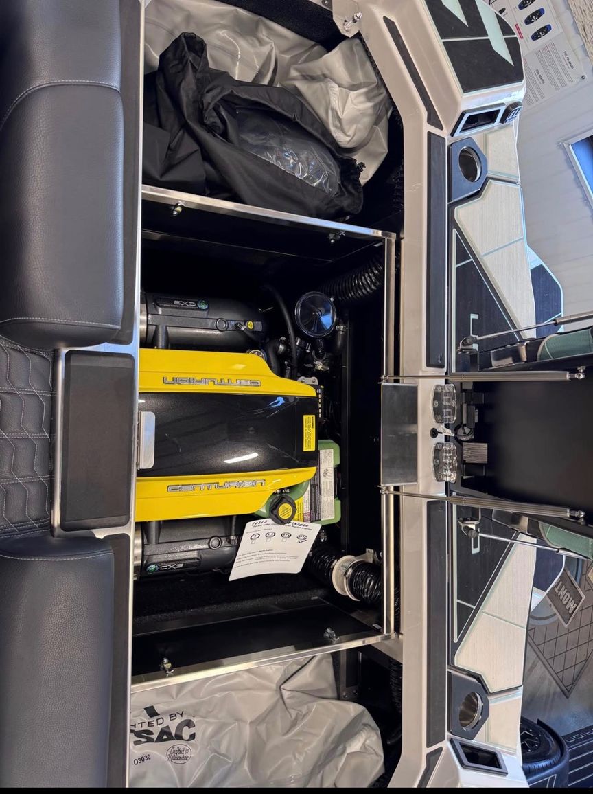This fully loaded 24.5’ Centurion Ri245 is built for serious surf performance and premium comfort. Powered by the PCM ZZ6 6.2L engine (465 lb-ft torque) with freshwater cooling and a heavy-duty Acme prop, this boat is designed to run full ballast and deliver one of the longest, cleanest waves in the industry. Equipped with CATs, and Plug-N-Play bow, rear, and transom ballast, wave tuning and push are top tier.