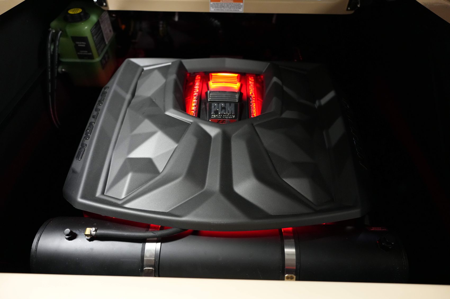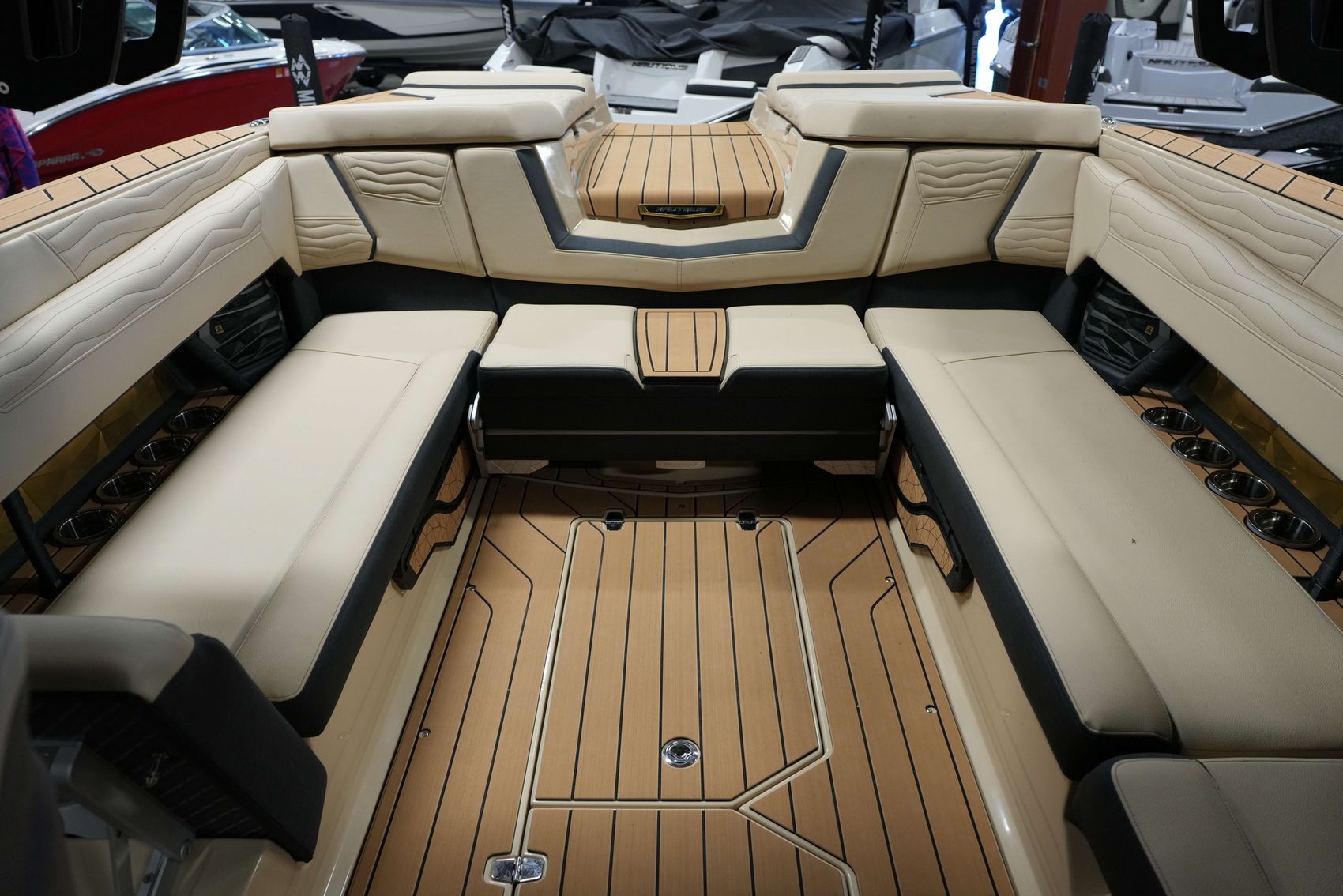 From its bold Jet Black exterior to the refined Sahara Sand interior, every detail reflects quality. Inside, you’ll find a heated, height-adjustable helm seat, retractable bow armrests, and a premium JL Audio Studio Elite sound system for an immersive experience on the water.