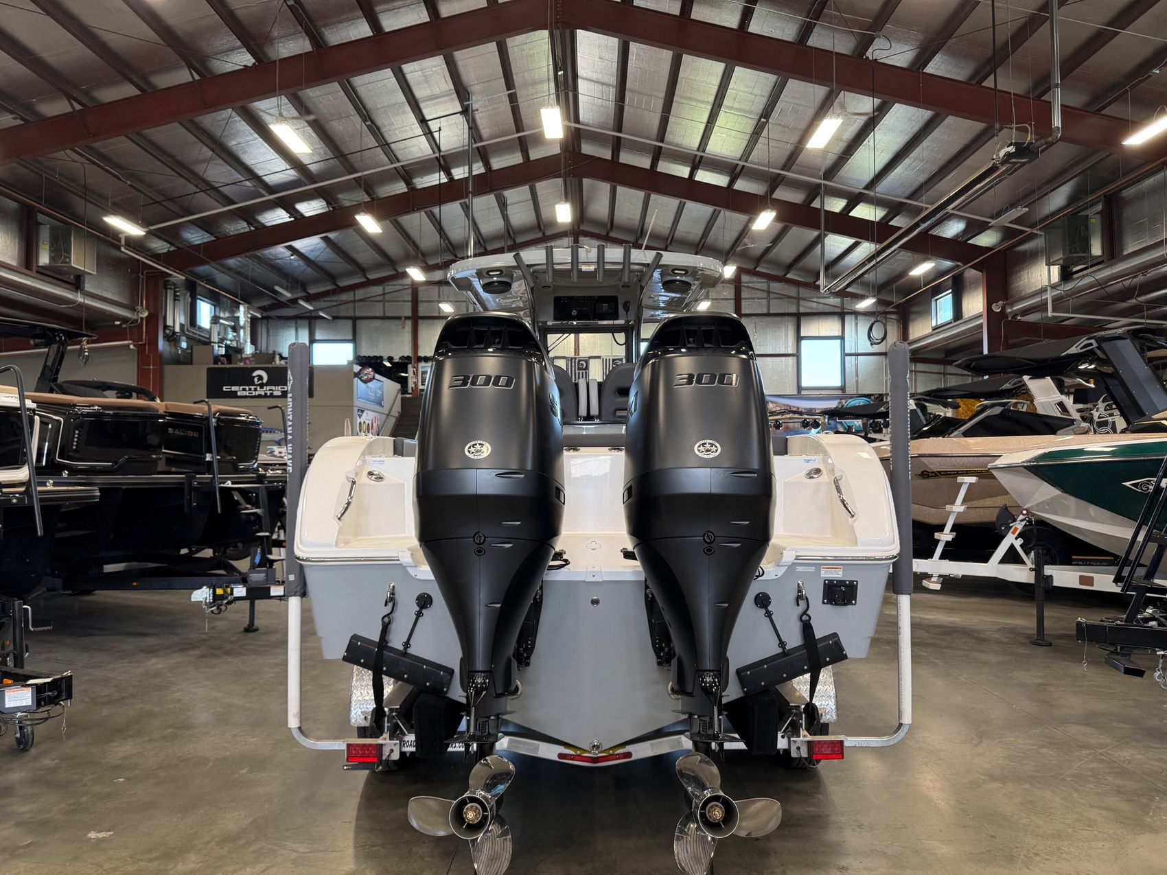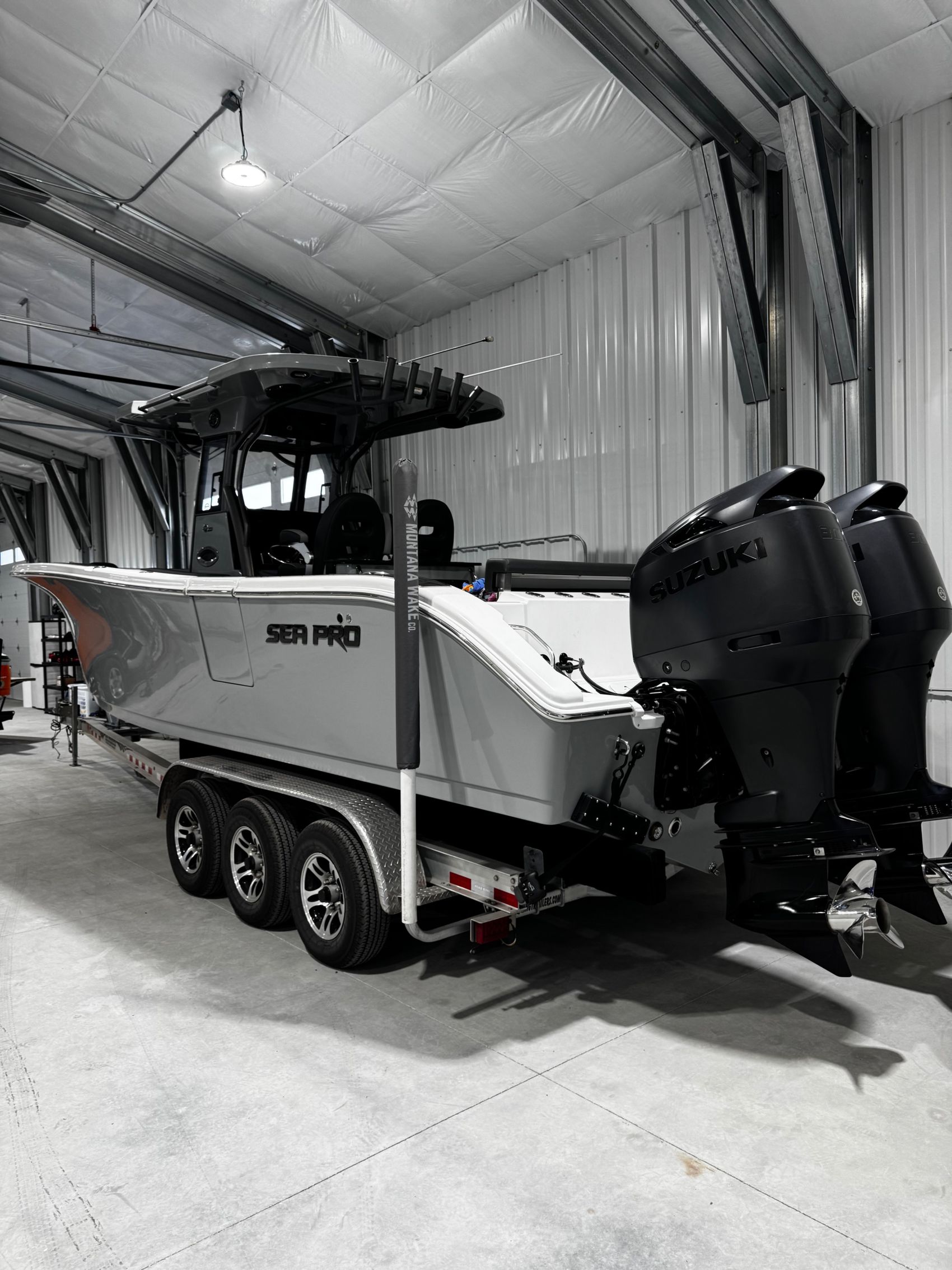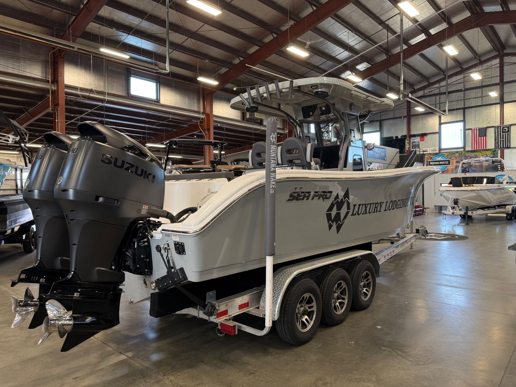 - Twin Suzuki DF300APX outboards (Black)