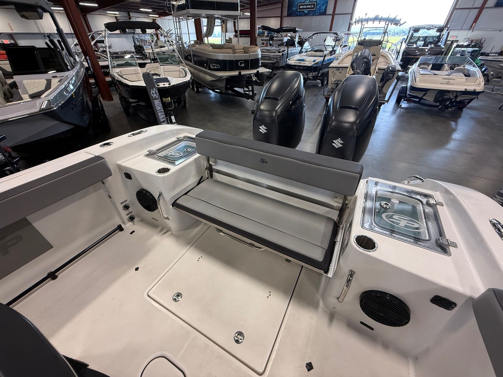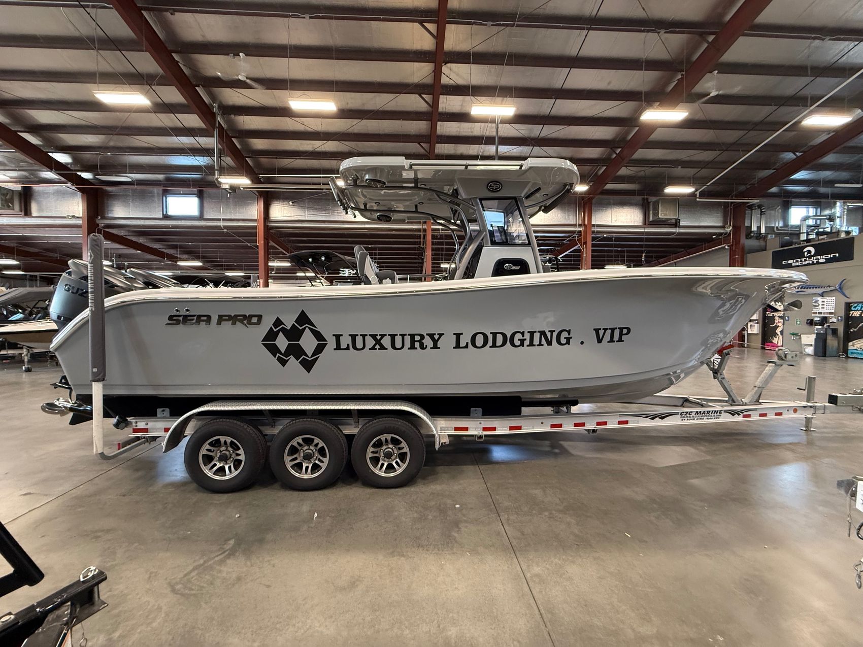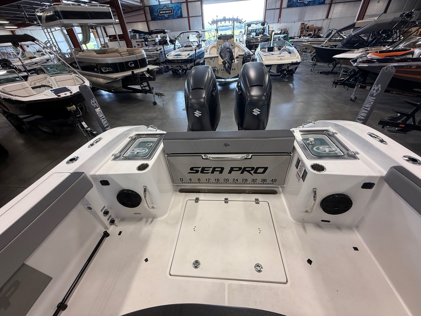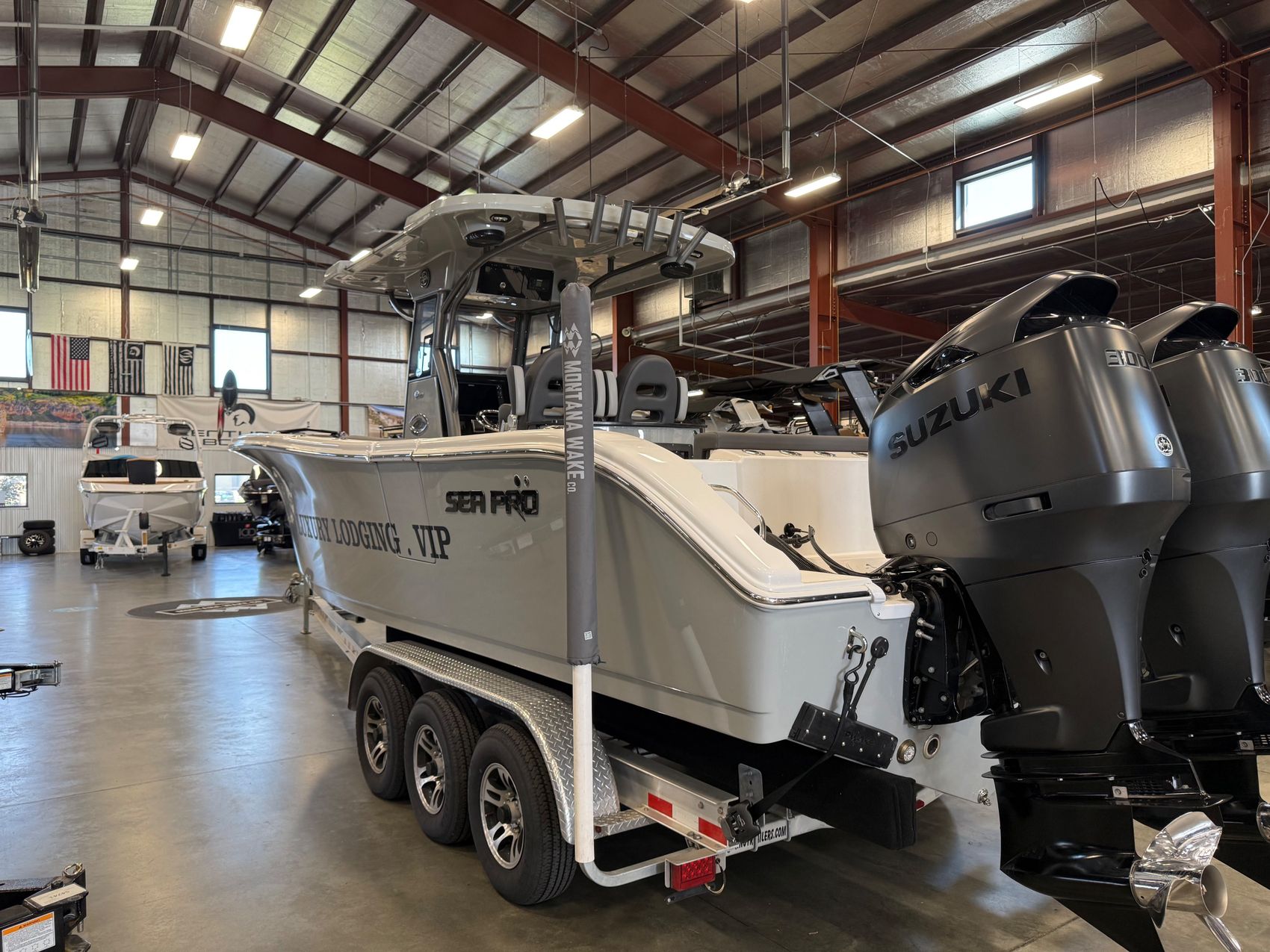 - Twin Suzuki DF300APX outboards (Black)
