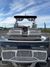 The exterior is finished in Blue Steel and Silver metal flake over a Whisper Gray base, giving it a sharp, understated look. A DropZone auto tower, premium audio package, and full cover and bimini round out the build.