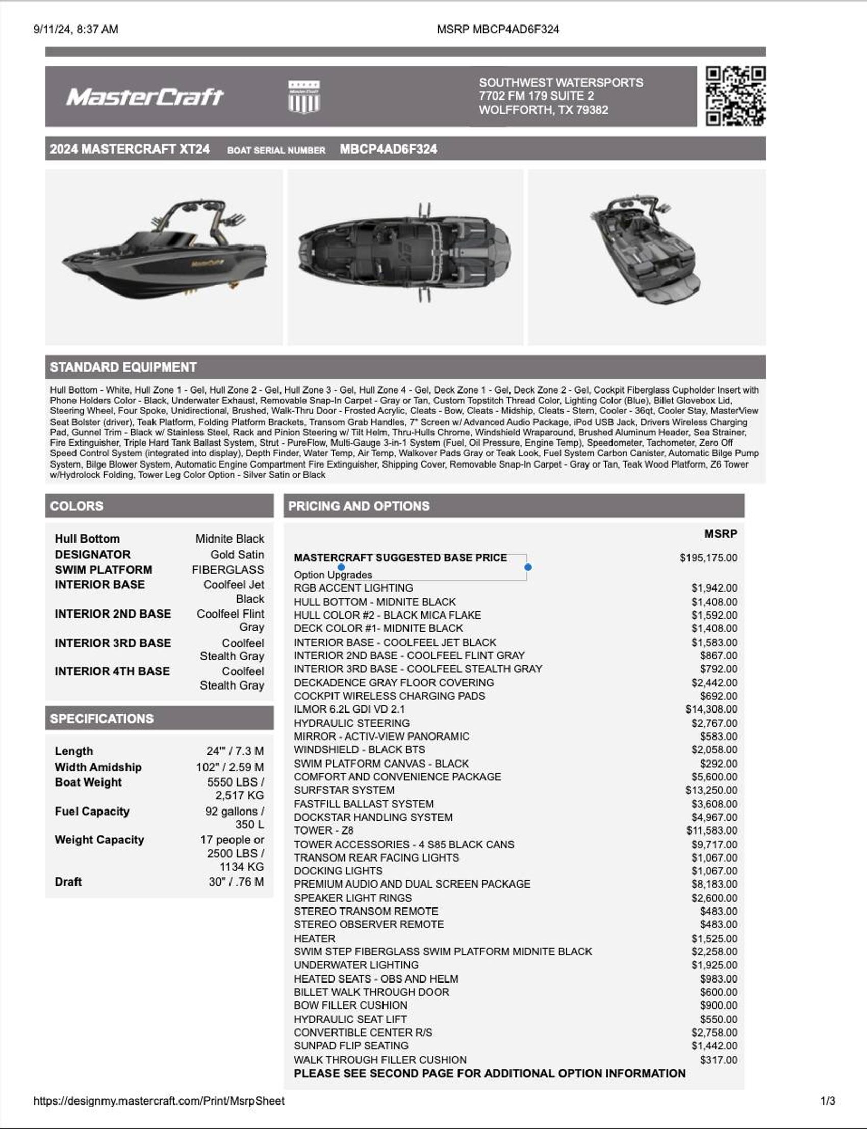 Make a statement on the water with our stunning 2024 X-24 MasterCraft. Designed to represent the apex of power and class, this boat comes packed with features sure to make your on the water experience a memorable one.